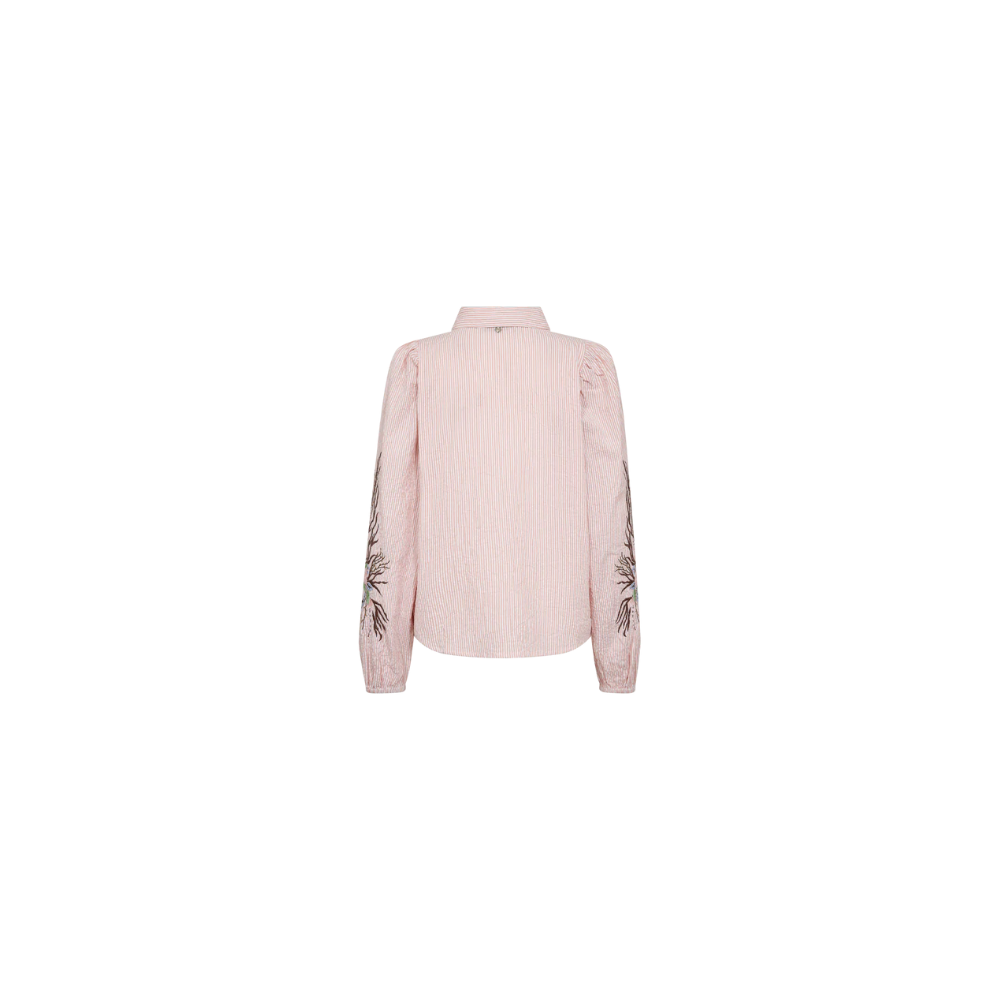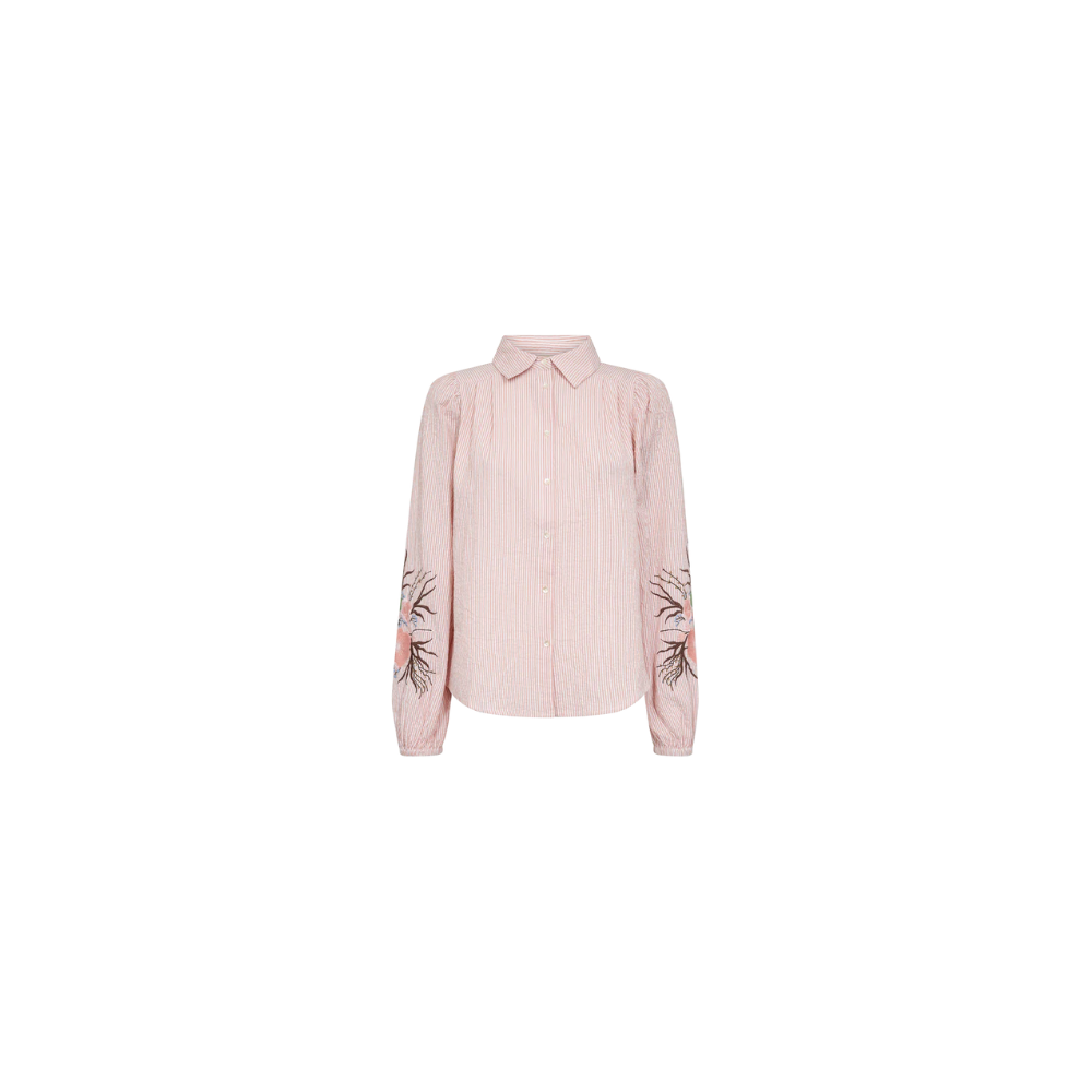 En klassisk bomuldsskjorte med smukt broderi på ærmerne, der tilfører et feminint twist. Den er designet i en tidløs silhuet med knaplukning og et blødt materiale, der kombinerer struktur med komfort – perfekt til både et elegant og afslappet look.