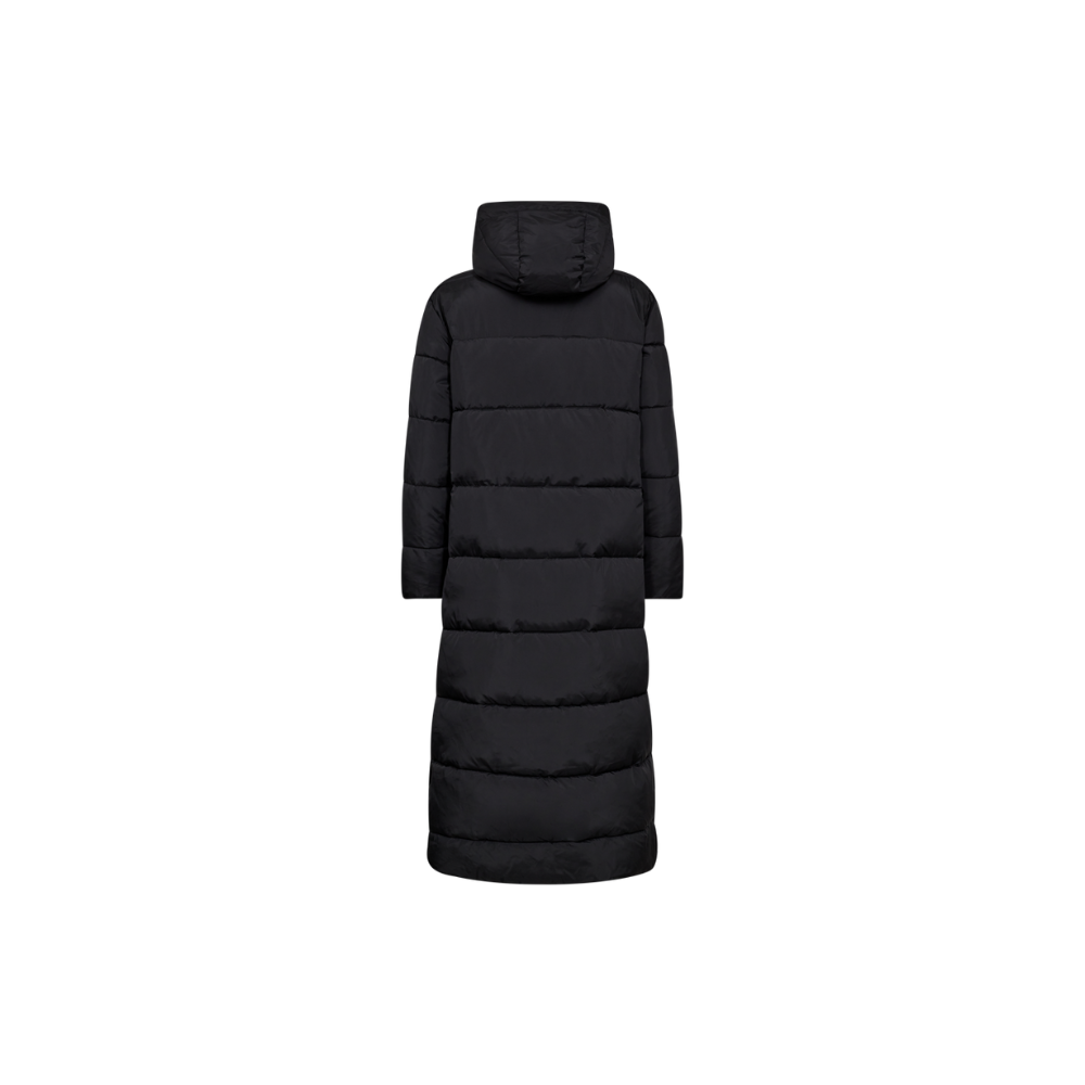 Jacket from Freequent in a soft, wadded material. The jacket has a long silhouette with zip and press stud fastening, side pockets, a hood and side slits.