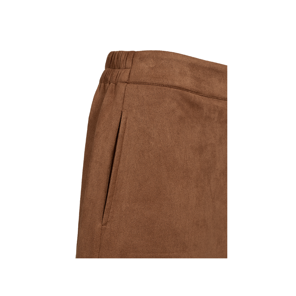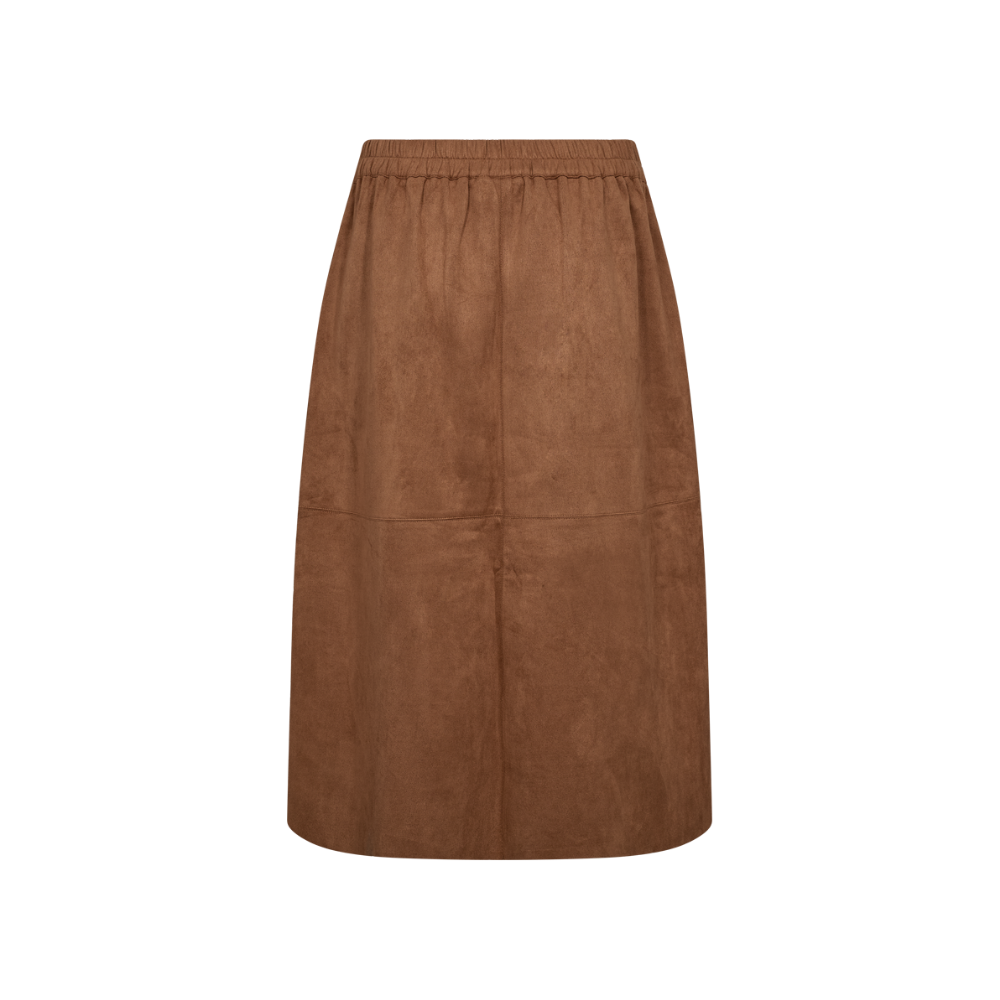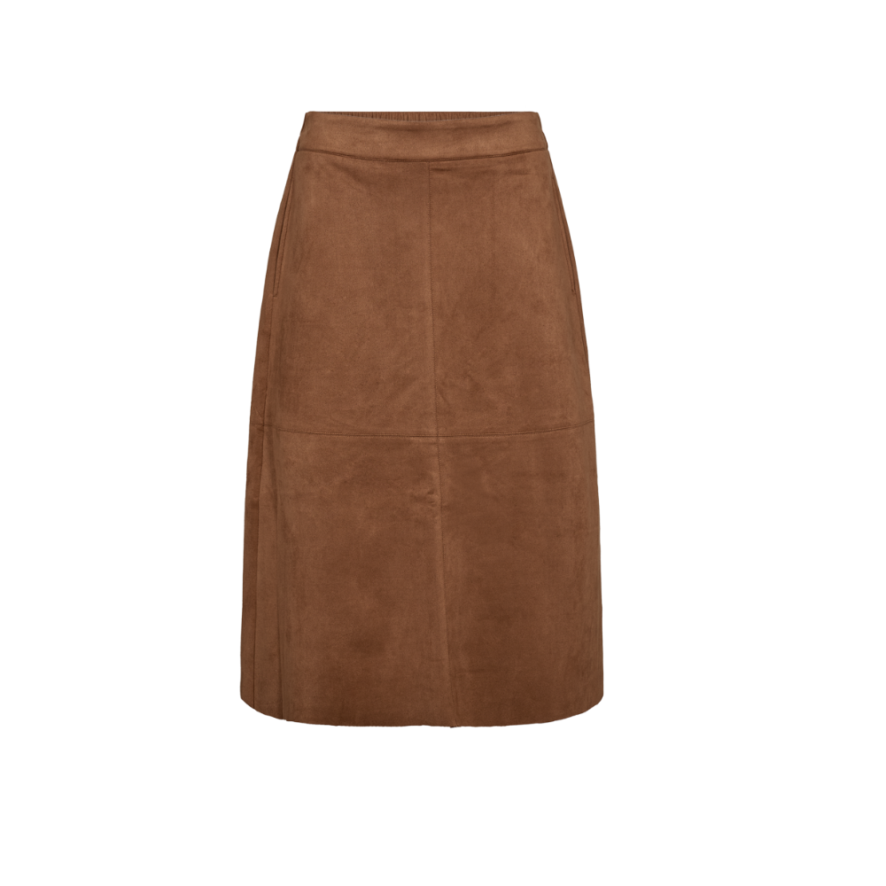 Skirt from Freequent in a soft material of faux suede. The skirt has a simple silhouette with an elasticated back, side pockets and a light A-shape.