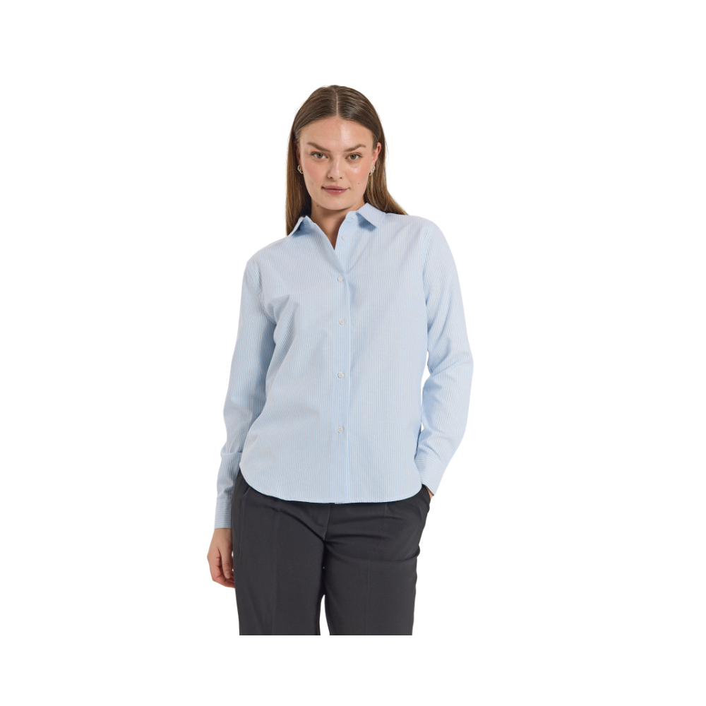 Shirt from Freequent in a soft material with stripes. The shirt has a classic cut with a front button fastening, long sleeves with cuffs as well as a lovely collar.